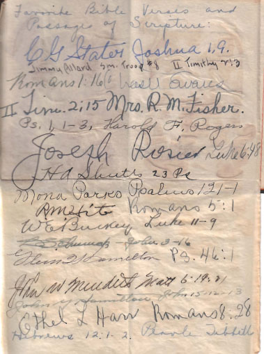 From the Bible of Charles Marsh. Favorite passages of servicemen.